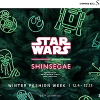 신세계가 준비한 스펙터클한 판타지! 올 크리스마스에는 스타워즈와 함께하세요. 영화처럼 판타스틱한 아이템을 비롯하여 사랑스럽고 감각적인 기프트까지-