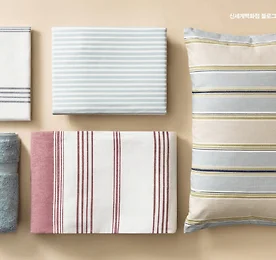(왼쪽부터 시계방향으로) * 코스탈 스트라이프 베딩세트 면 100% 소재에 스트라이프가 적절하게 배치되어 있어 깔끔한 마린 분위기를 연출할 수 있습니다. 블루, 레드 컬러. 퀸 사이즈 이불커버+베개커버 2P 세트. 15만5천4백원. 본점, 강남점, 경기점, 센텀시티, 의정부점. * 햄튼 베딩세트 면 100% 소재의 양면으로 사용이 가능한 컨템포러리한 느낌이 특징인 베딩입니다. 퀸 사이즈 덕에그 이불커버+베개커버 각각 2P 세트. 16만1천원. 본점, 강남점, 경기점, 센텀시티, 의정부점. * 보타니스트 쿠션 내추럴한 톤의 스트라이프 패턴 쿠션으로 소파나 침실 등에 포인트를 주면 분위기가 한층 화사해질 거랍니다. 40x60cm 블루, 그린 컬러 각각 4만1천3백원. 본점, 강남점, 경기점, 센텀시티, 의정..